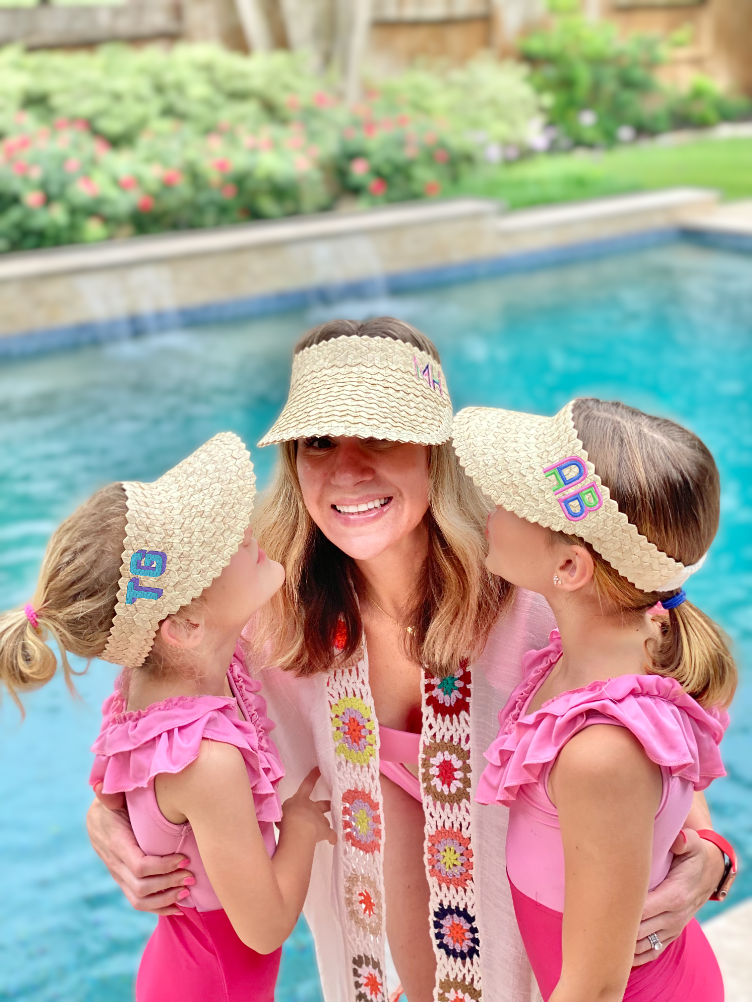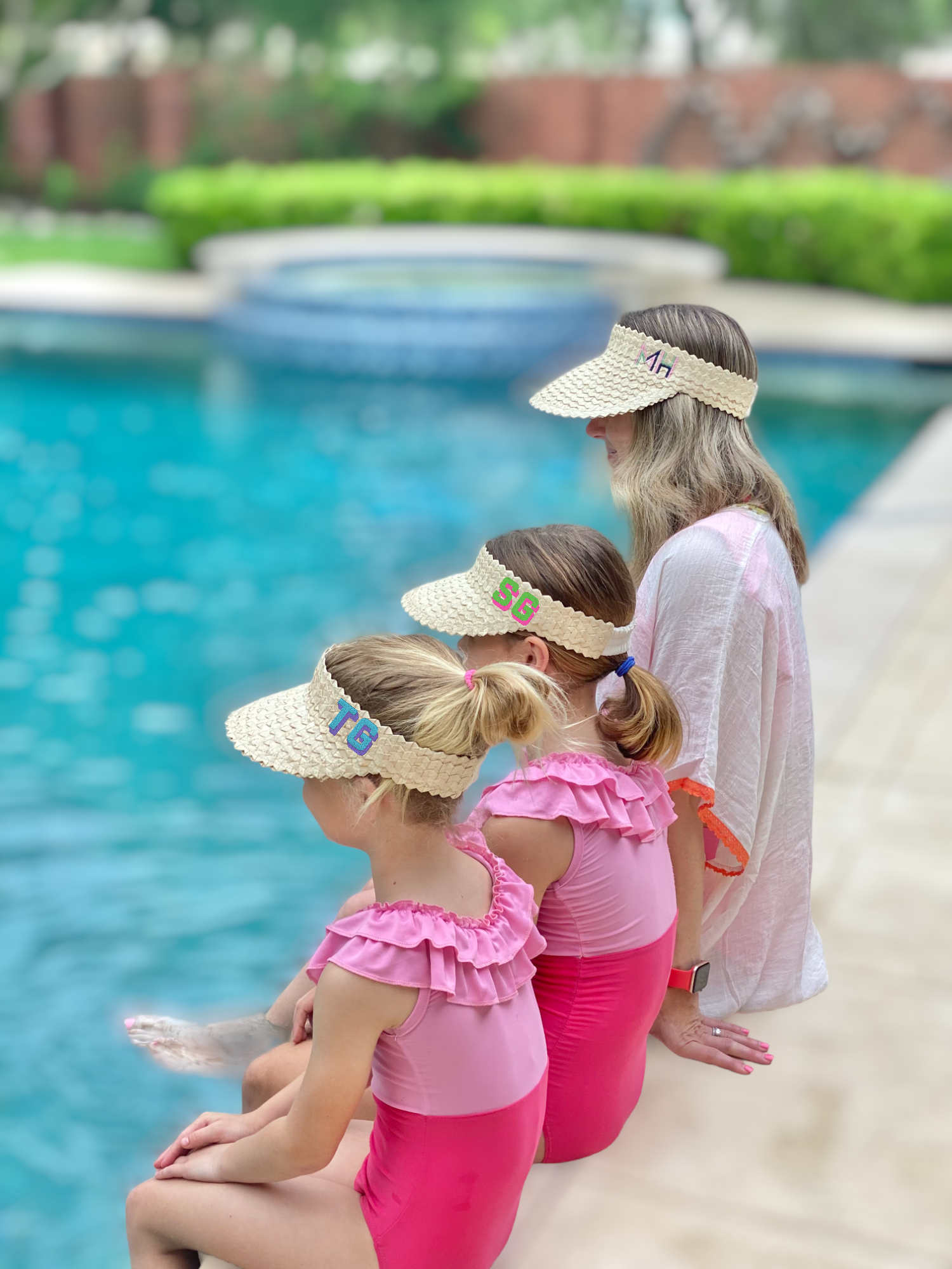 A unique twist on the straw hat, a handmade visor! Available in adult and youth sizes so you can match your mini even on the beach!
