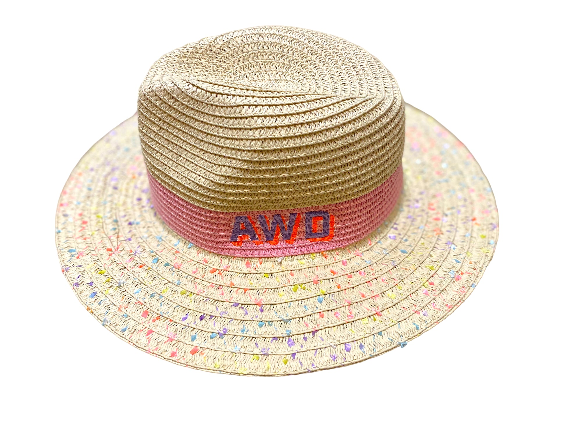 Why just a straw hat when you could have CONFETTI?! Pops of neon confetti sprinkled throughout the semi structured brim. One size fits most adults.