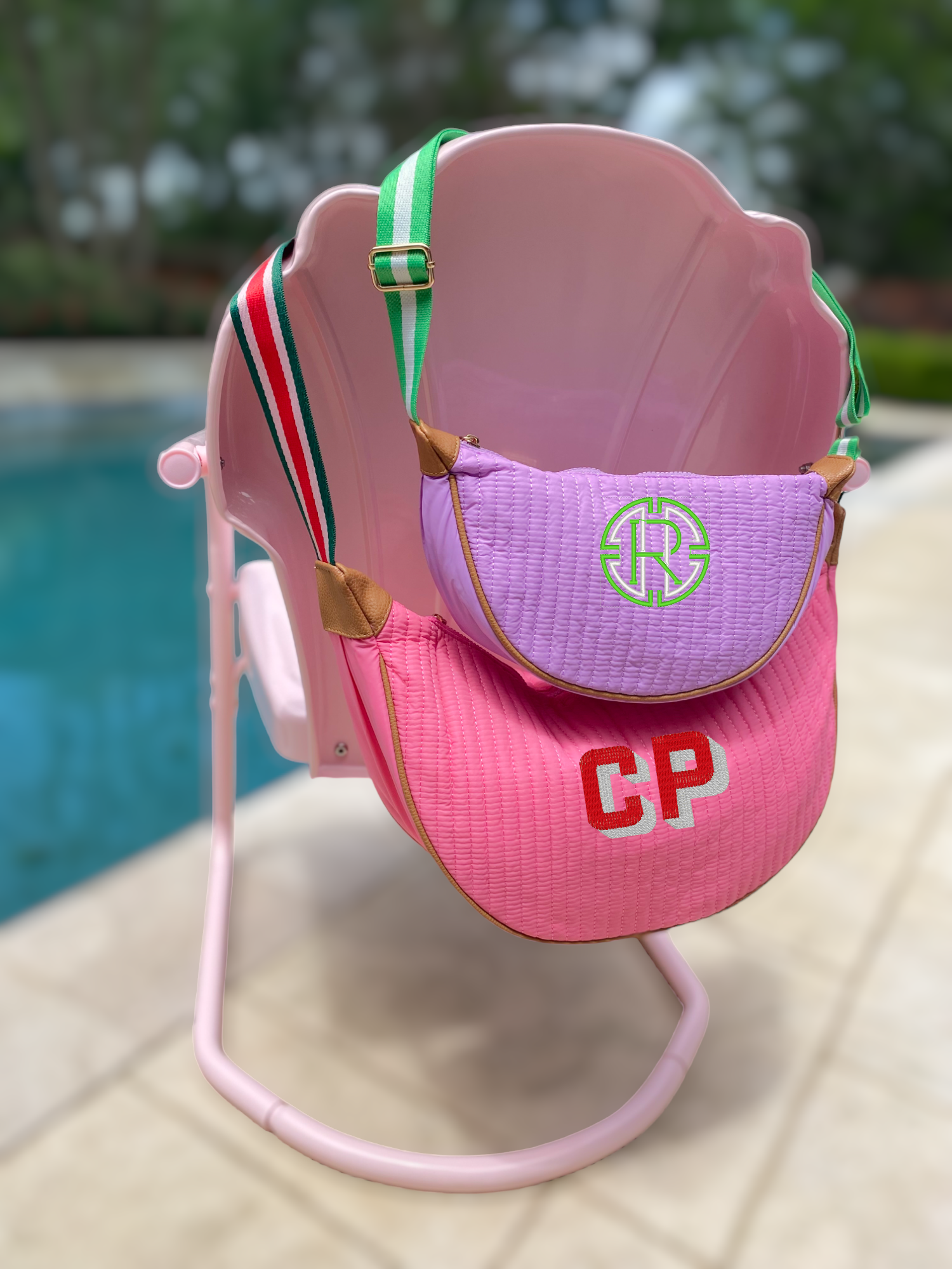 Ezra Pink has a red, hunter green and white strap--designer dupe vibes!