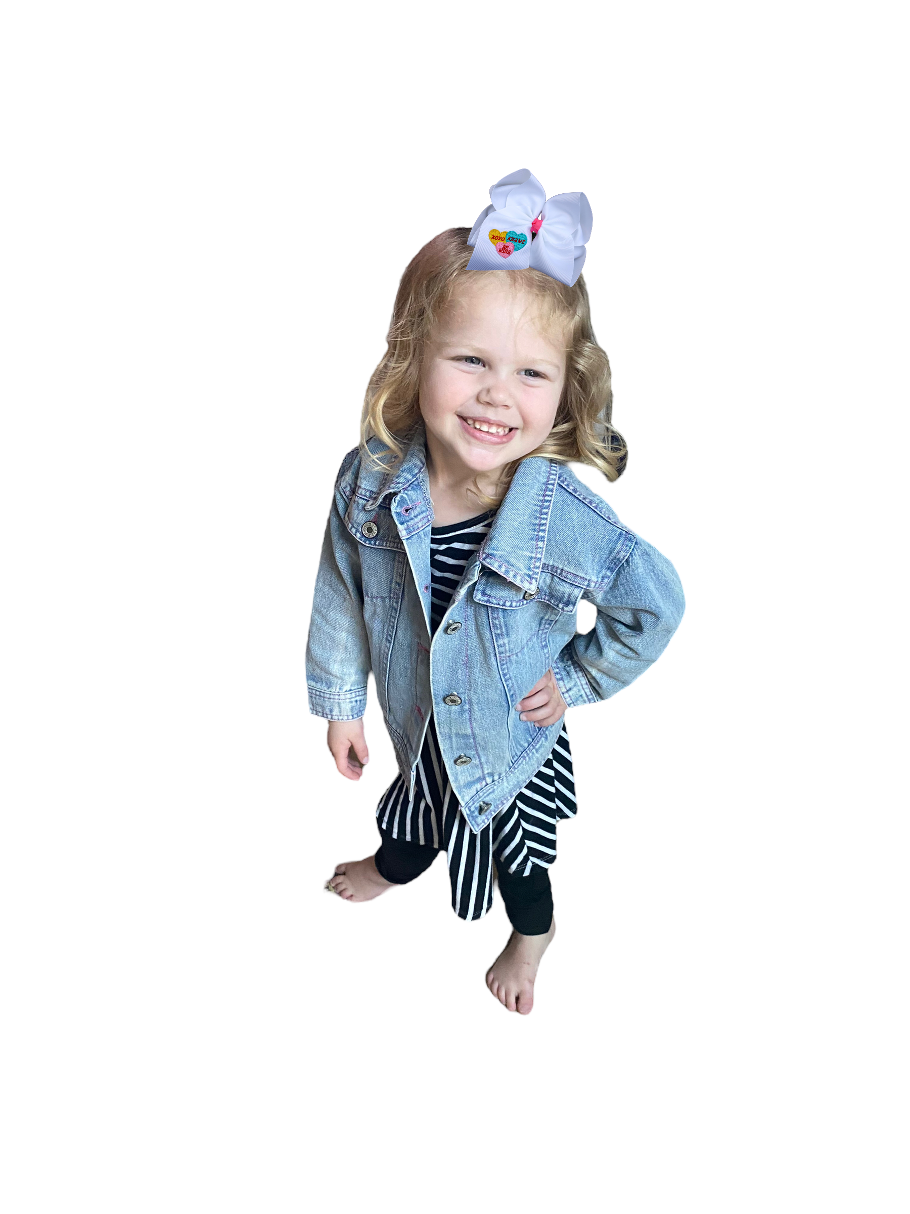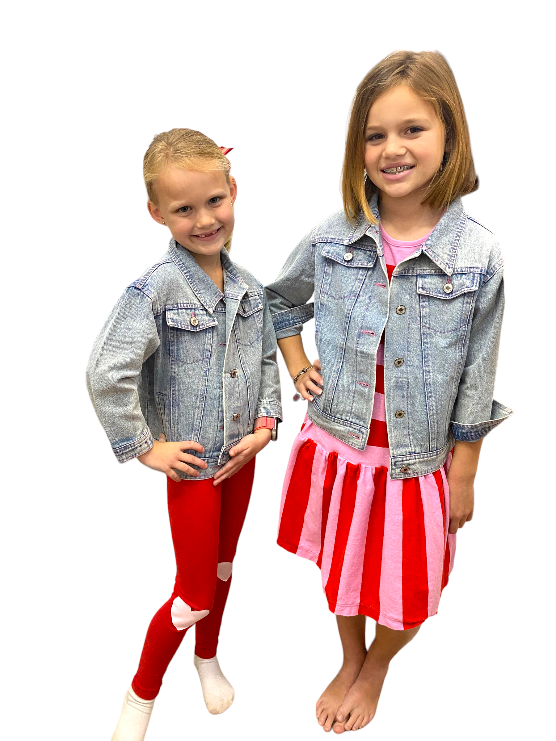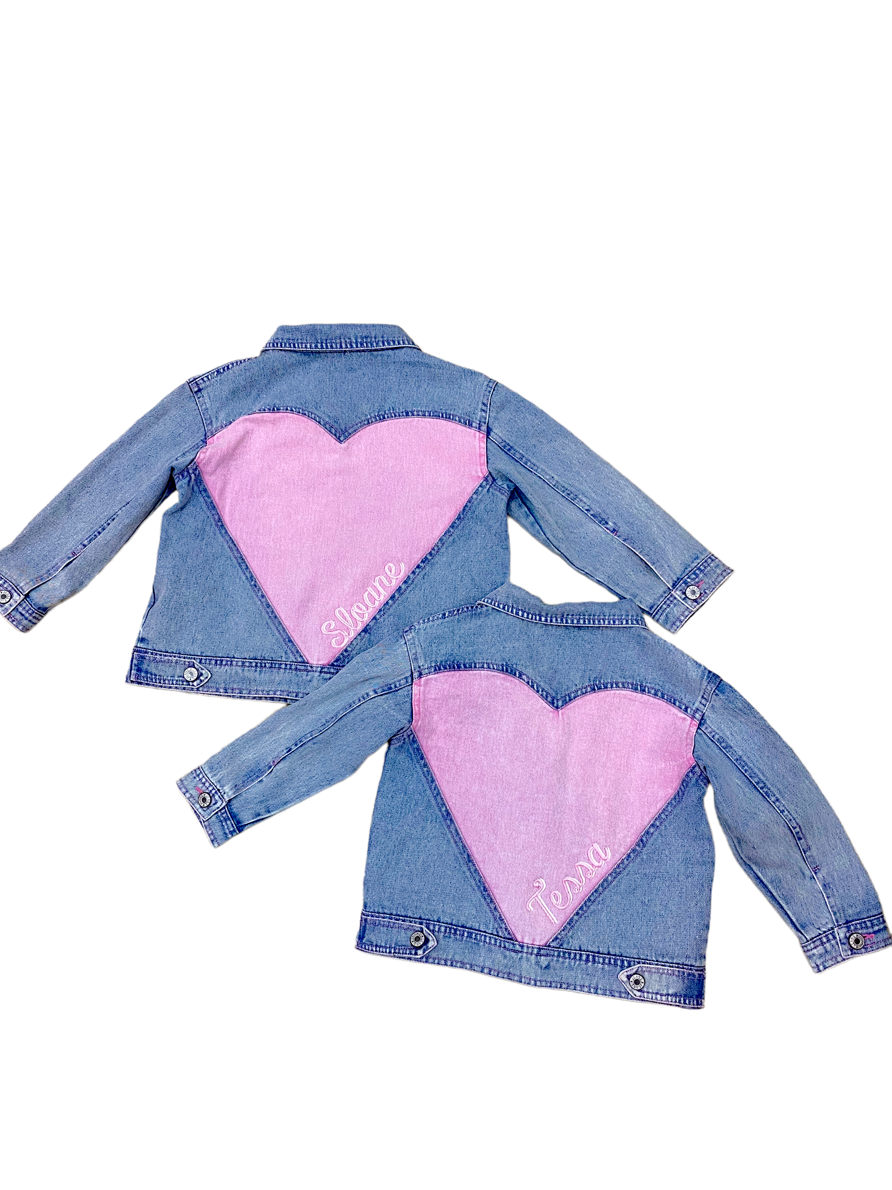 These denim heart jackets are a year round staple! Children's include an embroidered name on the back heart. Adults have an embroidered cufflink.