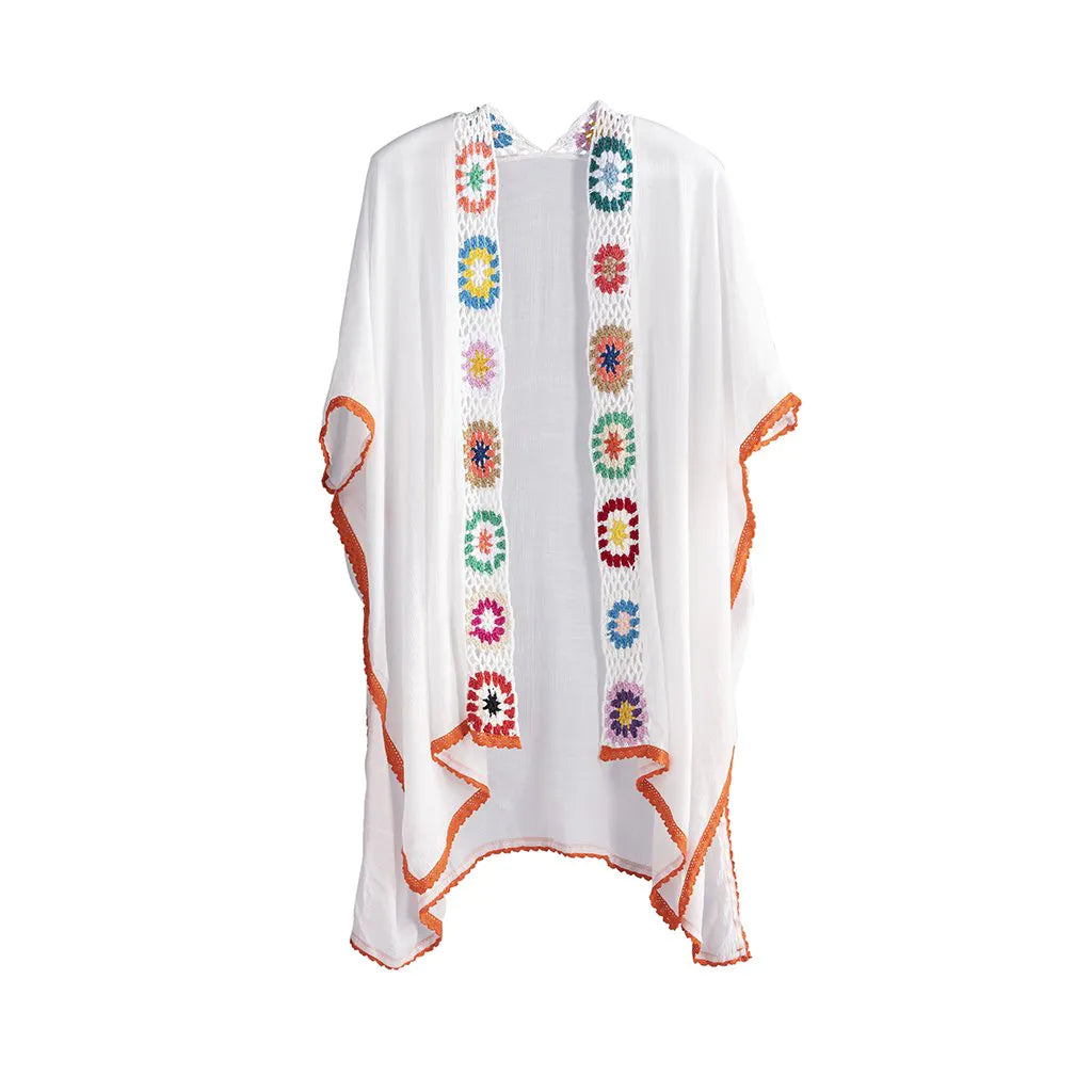 Create a chic summer look with Shiraleah’s Mona Kimono. This sheer, white kimono features an earthy colorway of crochet, making it the perfect addition to your beach ensemble or a casual night out. This one size fits all kimono is stylish yet versatile and sure to become a favorite of yours this summer. Ready to Ship.