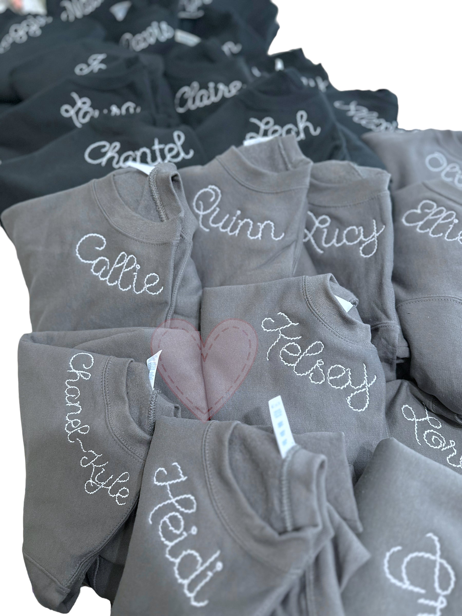 Be comfy but cute in our crowd favorite. Embroidered on the necklineof our crewneck sweatshirt, this makes the perfect gift. Fits unisex, and we recommend ordering your regular size, but always measure according to the chart below.