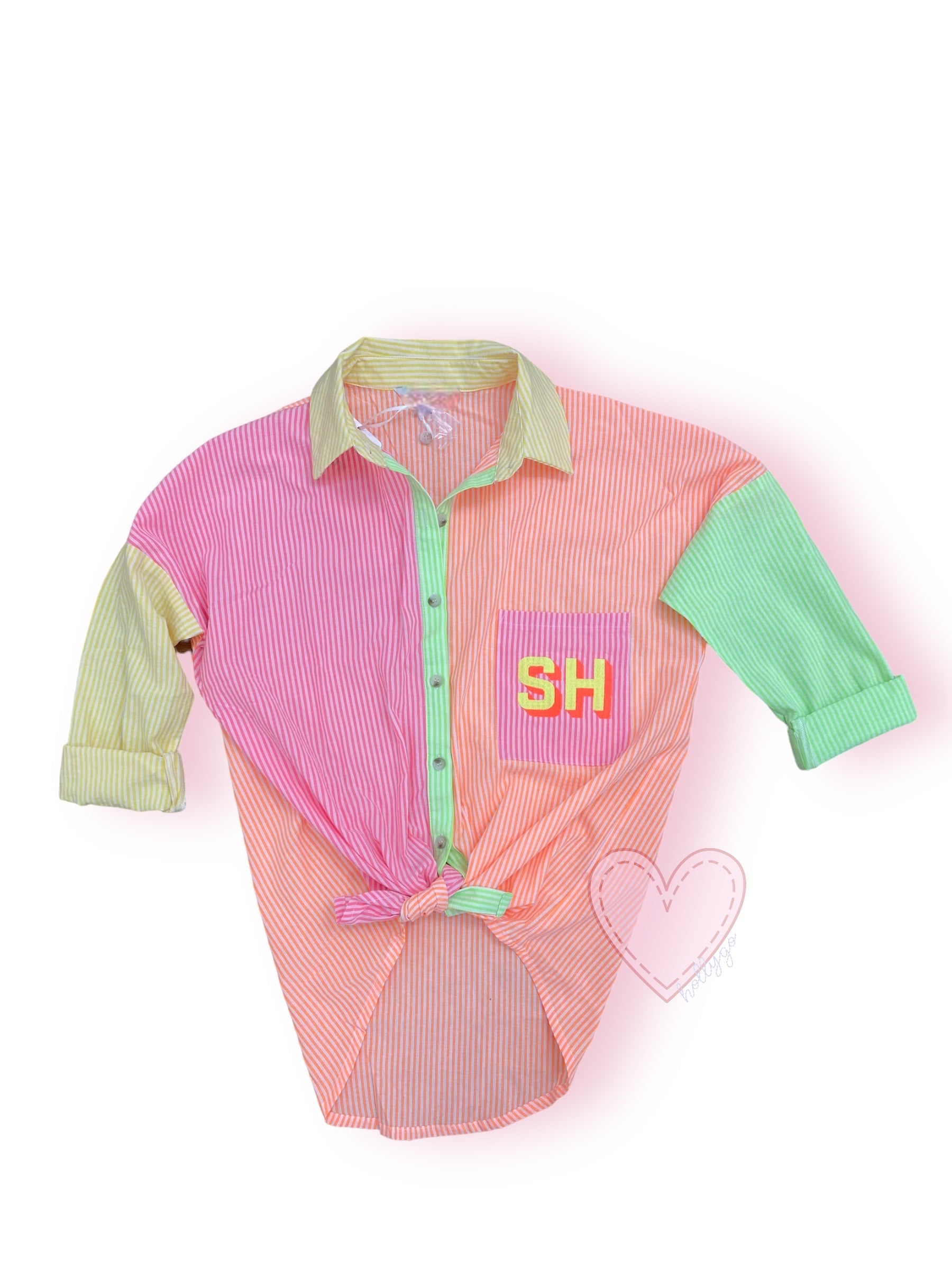 Show off your style with this eye-catching Neon ColorBlock Buttondown! This vibrant top is a 2-for1! Perfect for throwing over your swimsuit or tie it in a bow with your favorite shorts. The color block pattern adds an edgy and unexpected pop of color. Rock it over and over--and get ready for the compliments to roll in!